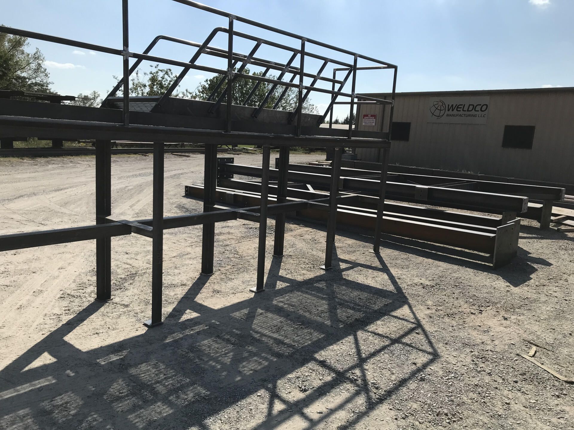 Weldco manufactures platforms and skids for many industries including oil and gas, food and beverage, mining, construction, agriculture, aviation. We can design and build what you need from a simple stairway to access your generator controls, a stairway with landing to give easy door access into a walk in enclosure, or platforms with stairways to allow for easy entry and service at all doorways in a walk in enclosure. We pride ourselves in offering precision fit structures that will accommodate your project.........from data centers to generator sets to all the catwalk in between.